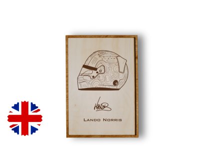 Dřevěný obrázek s rámem (formát A5) s ikonickou modro-oranžovou přilbou hvězdy F1 Landa Norrise. 🇬🇧 Must-have pro každého fanouška tohoto talentovaného pilota! Nyní se stojánkem...