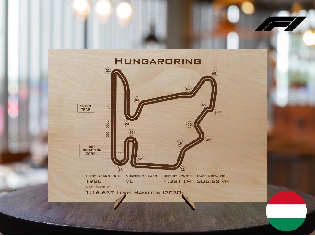 Dřevěný obrázek (formát A4) s ikonickou tratí Hungaroring – technickou tratí s minimem míst k předjíždění, kde rozhoduje dokonalá kontrola nad vozem. Skvělá volba pro fanoušky strategie! 🏎️ Nyní se stojánkem v hodnotě 99 Kč ZDARMA. 🎁