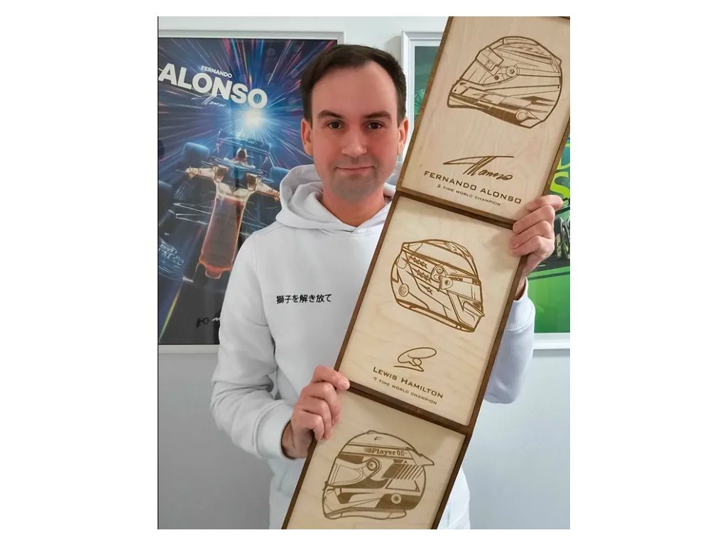 "Vypadá to opravdu skvěle! Dřevěné obrázky jsou vyladěné do posledního detailu. Moc chválím zpracování produktů. Pro fanouška motorsportu krásný dárek."