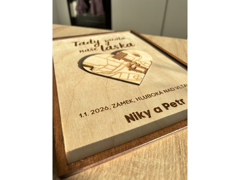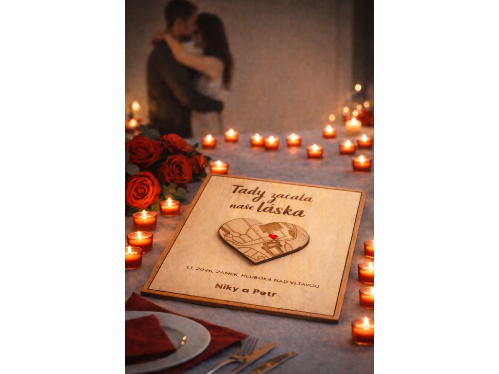 Vybrané místo převedeme do elegantní mapy ve tvaru srdce, která symbolizuje vznik společného příběhu.